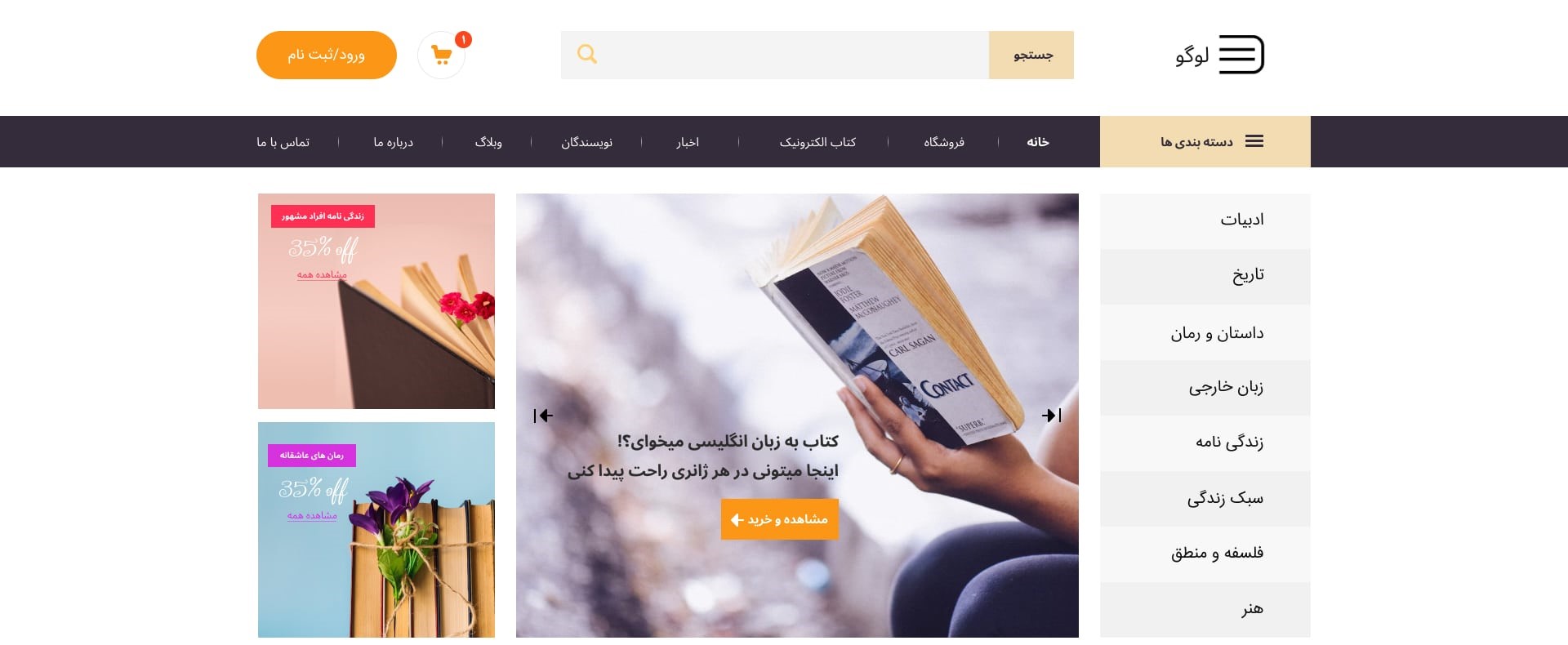 - بخش معرفی کتابها با جزئیات (خلاصه، نویسنده، قیمت)